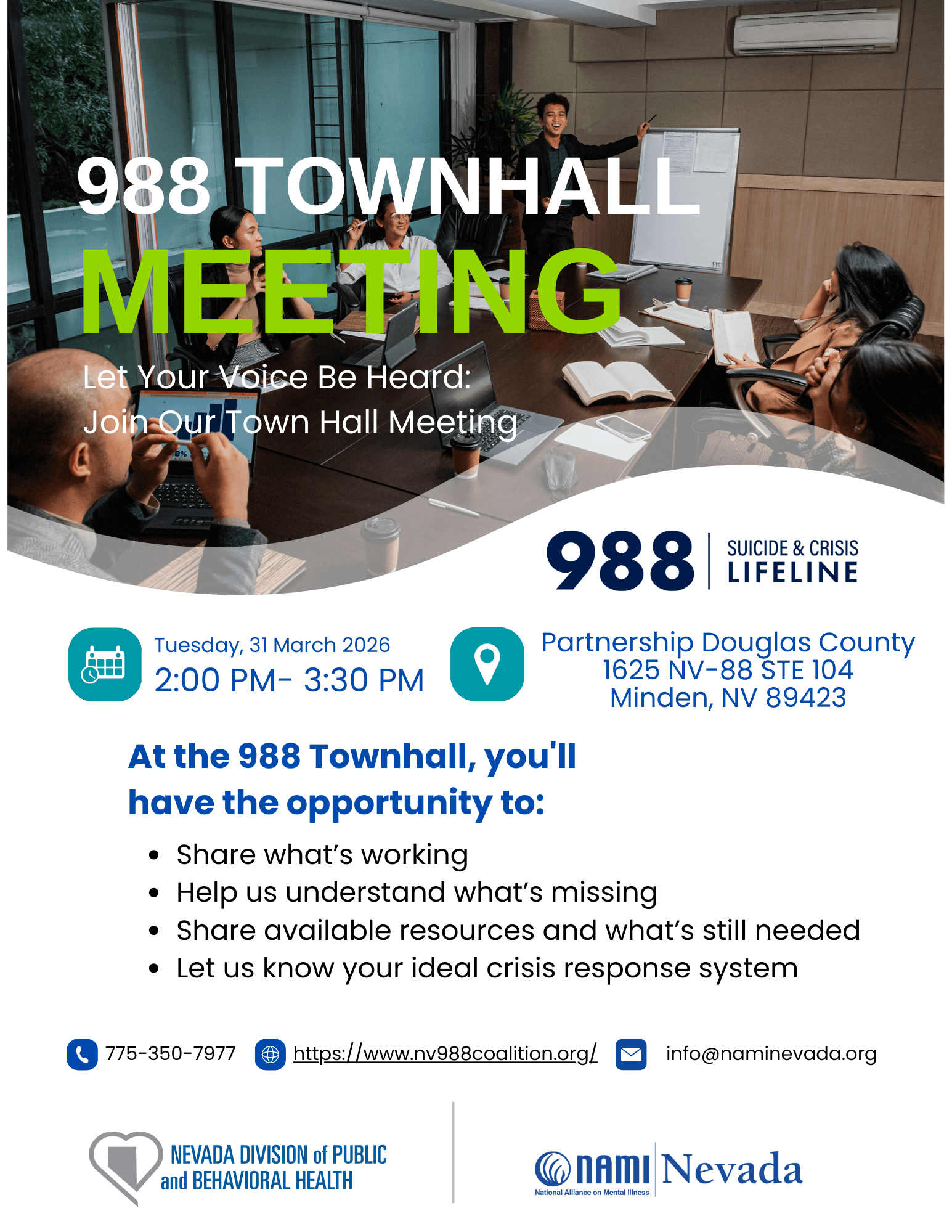 Have you or someone you know used the 988 Suicide & Crisis Lifeline? We invite you to join us for an upcoming 988 Townhall Meeting to share your experiences, feedback, and ideas.